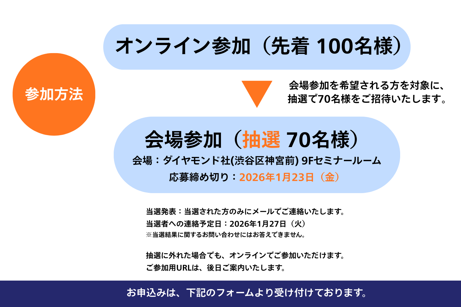 ※抽選に外れた場合でも、オンラインでご参加いただけます。